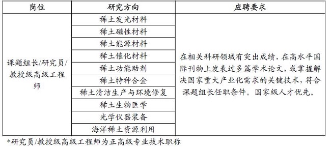 中科院海西院厦门稀土材料研究所2021年科研人才招聘启事